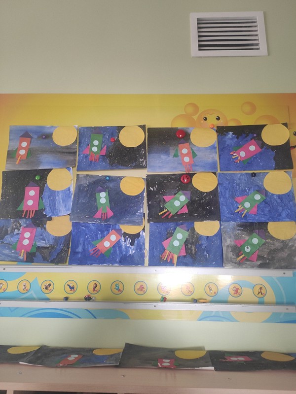 После беседы с детьми на тему "12 апреля - День космонавтики". Дети тоже решили, как Юрий Гагарин, тоже отправиться в космос. Создали свой космос, смастерили себе ракету и вперёд!!!