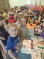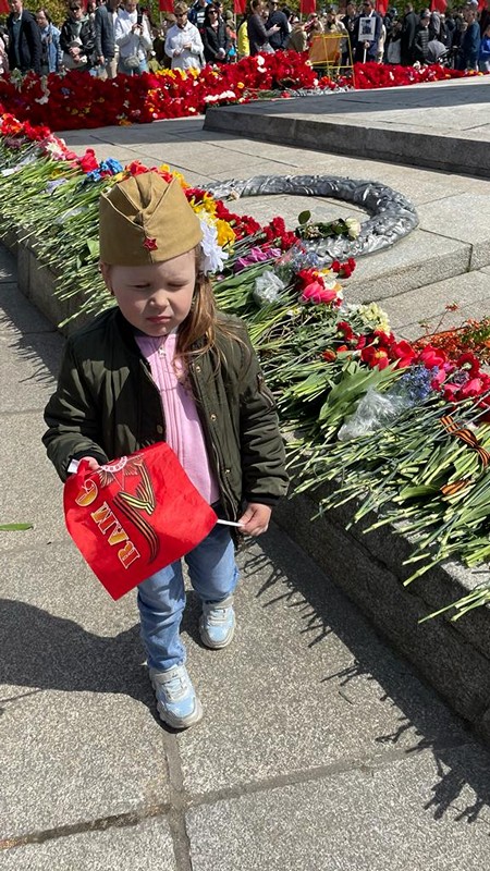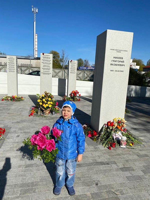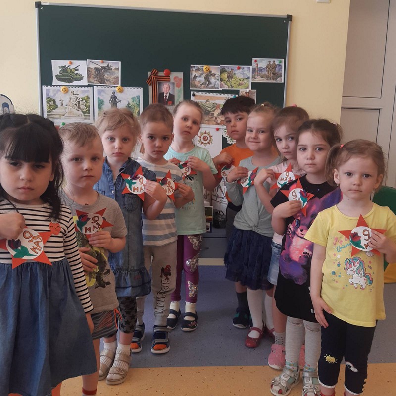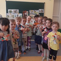 В канун Великого праздника 9 Мая, воспитанники группы «Янтарики» вместе с воспитателем Викторией Эдуардовной Кихо провели занятие цели которого: расширять представление детей о празднике День Победы, воспитывать любовь к Родине, патриотизм, уважение к ветеранам ВОВ. Была проведена работа с родителями. Многие принесли военные машины, подделки и фотографии своих прадедушек. Был проведен флэшмоб «Идёт солдат по городу». Ребята вместе со своими родителями посетили памятники, возложили цветы к ним.