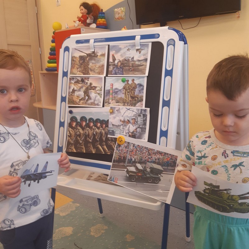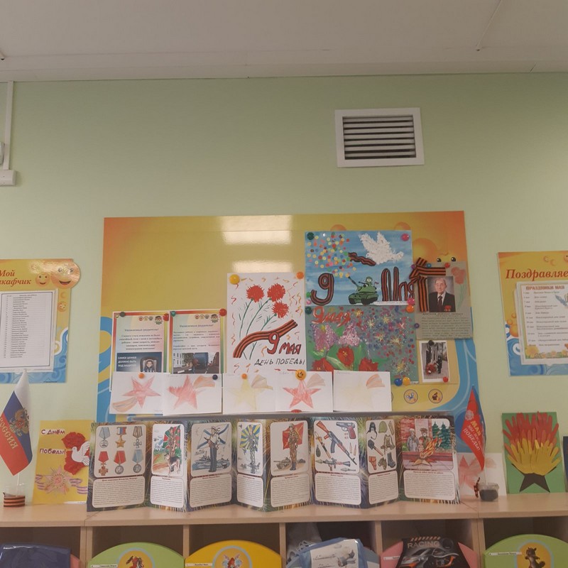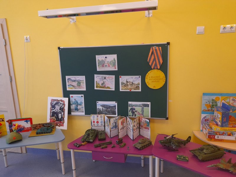 Цель: Расширять представление детей о празднике День Победы. Воспитывать любовь к Родине, патриотизм, уважение к ветеранам ВОВ. Была проведена работа с родителями. Многие принесли военные машины, подделки и фотографии своих прадедушек. Было проверено тематическое занятие и флэшмоб идёт солдат по городу.