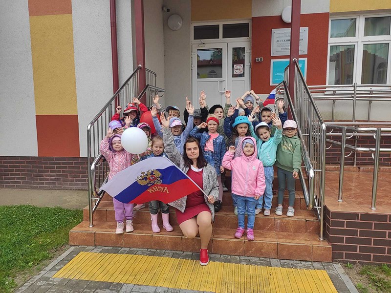 В этот день символами всех мероприятий, проходивших детском саду, были: флаг, герб и гимн России. На празднике ребята пели песни о Родине, о Родном крае и счастливом детстве.