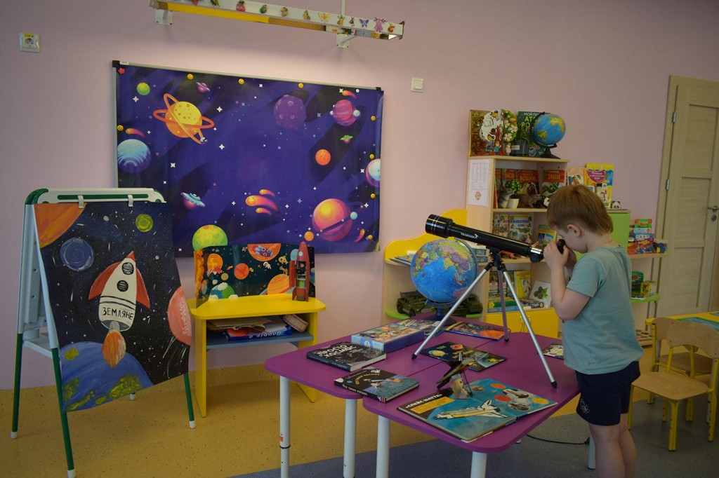 Воспитанники группы «Семицветик» активно изучали солнечную систему. В группе появился настоящий телескоп, который помог узнать много интересного и познавательного о космосе. Совместно с воспитателем Юлией Михайловной Чеботаевой провели ряд познавательных занятий на тему «Солнечная система».