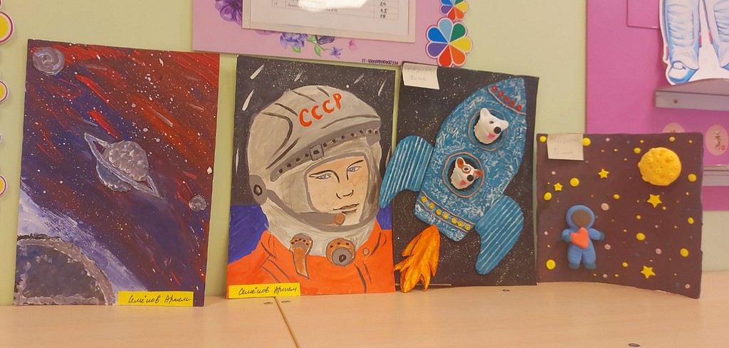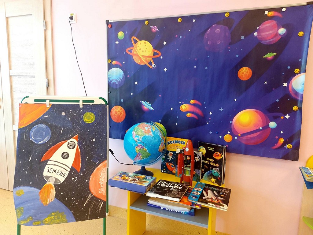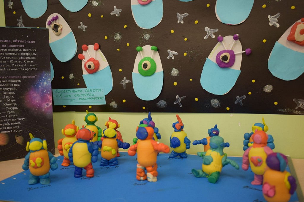 Совместно с воспитателем Чекаевой Светланой Геннадьевной, Юлия Михайловна организовала выставку рисунков и поделок на космическую тему. Всю неделю дети и взрослые были увлечены космосом!