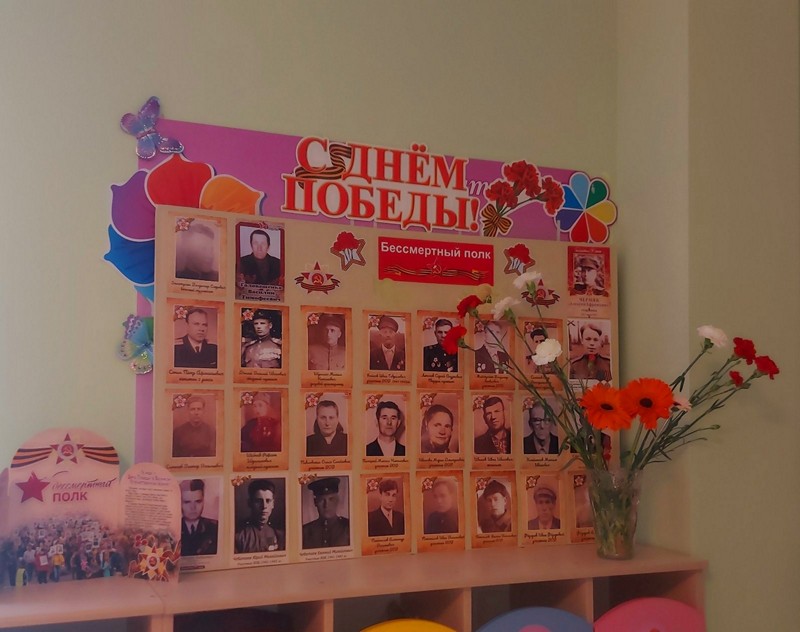 Оформлена выставка поделок, рисунков. В память наших дедов и прадедов, участвовавших в боях Выполнена стендовая выставка «Бессмертный полк»