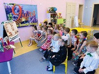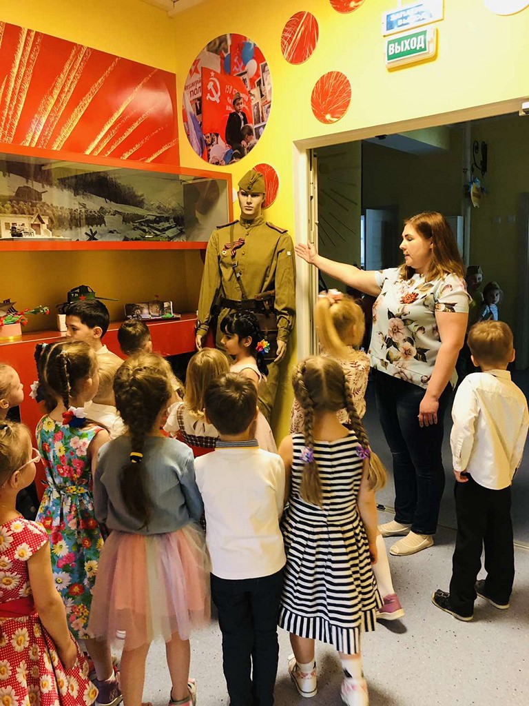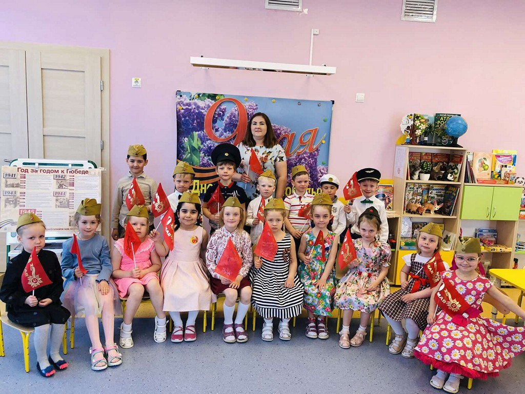 Воспитанники группы «Семицветик» совместно с педагогом посетили музей детского сада «Никто не забыт, ничто не забыто!», посвящённый Великой Отечественной Войне. Посетили выставку детских рисунков, посвященную Великой победе. Педагогом Чекаевой Светланой Геннадьевной было проведено познавательное занятие на тему « Этот День Победы!» ( воспитание патриотических чувств у детей, уважение к народным героям, а также событиям времён Великой Отечественной Войны). «Семицветики» активно приняли участие в музыкальном флешмобе, посвящённому Дню Победы!