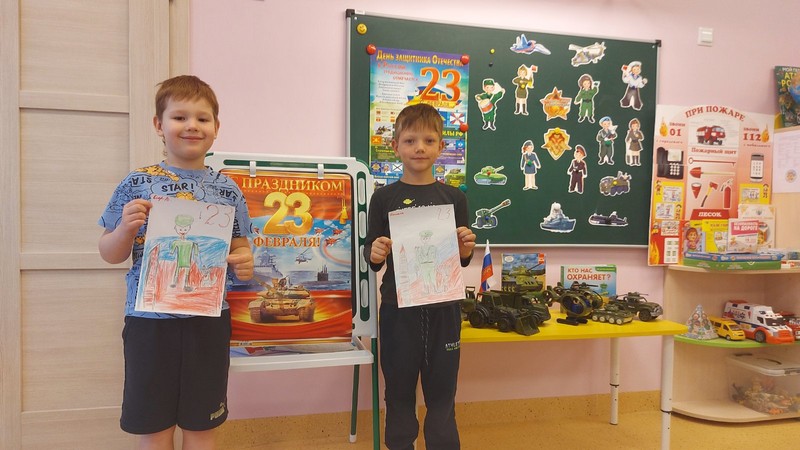Накануне праздника 23 февраля – День защитника Отечества, воспитанники группы «Семицветик» вместе с воспитателем Чеботаевой Юлией Михайловной с большим удовольствием продолжают знакомиться с историей и традициями своей Родины. Это способствует развитию нравственного и патриотического воспитания, воспитания уважительного отношения к защитникам нашей Родины, закреплению знаний об армии России, видах вооруженных сил. Развивает стремление детей к совершенствованию физических качеств, к укреплению здоровья, а так же стремление детей отражать свои знания, впечатления, мысли и чувства в играх, в изодеятельности, в чтении стихов.