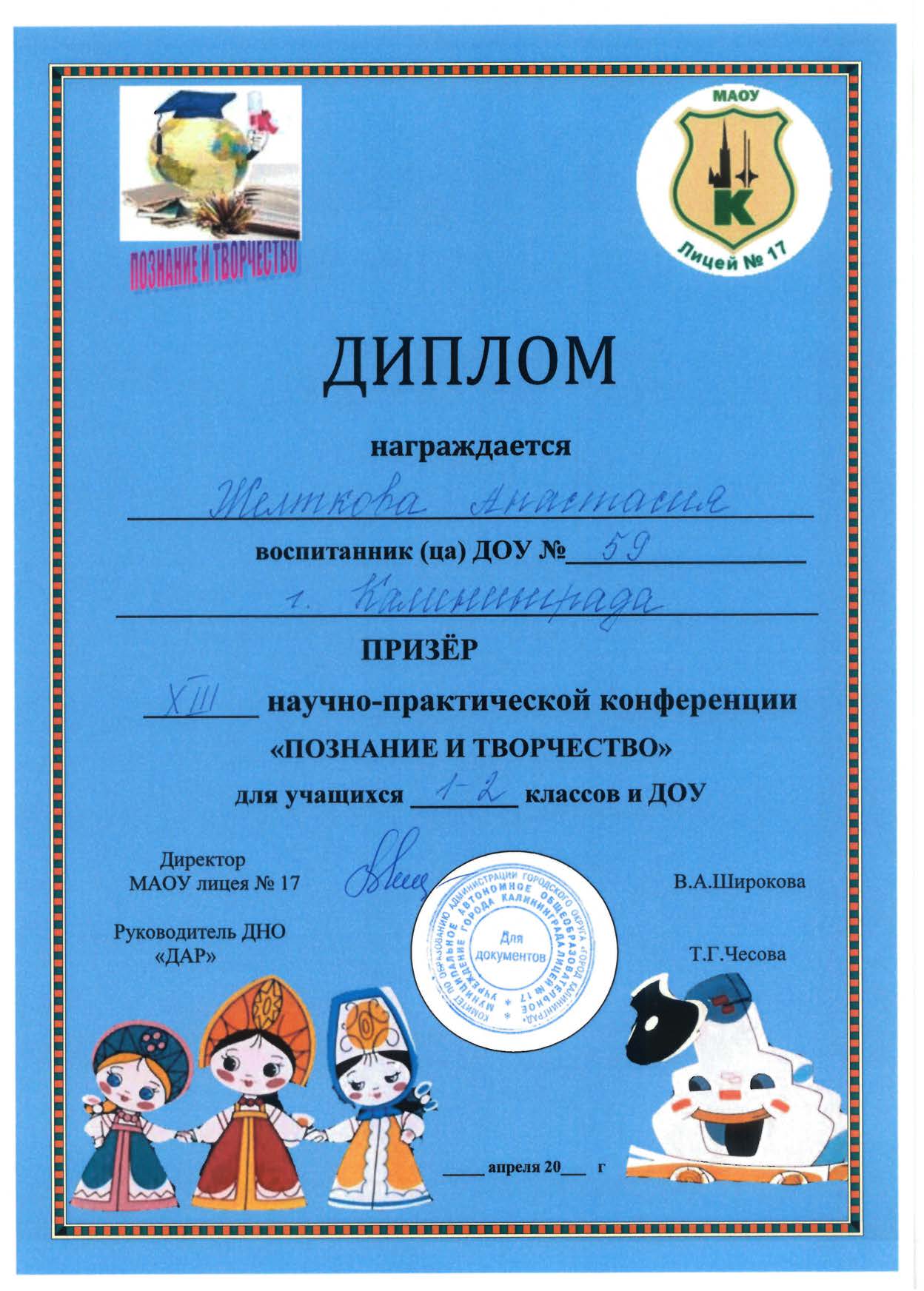 21 апреля 2023 года ребята из подготовительной группы "Семицветик" впервые приняли участие в XIII научно-практической конференции "Познание и творчество", которая состоялась в МАОУ лицее № 17. Дети достойно представили свой проект "Первый в космосе" и стали ПРИЗЁРАМИ!