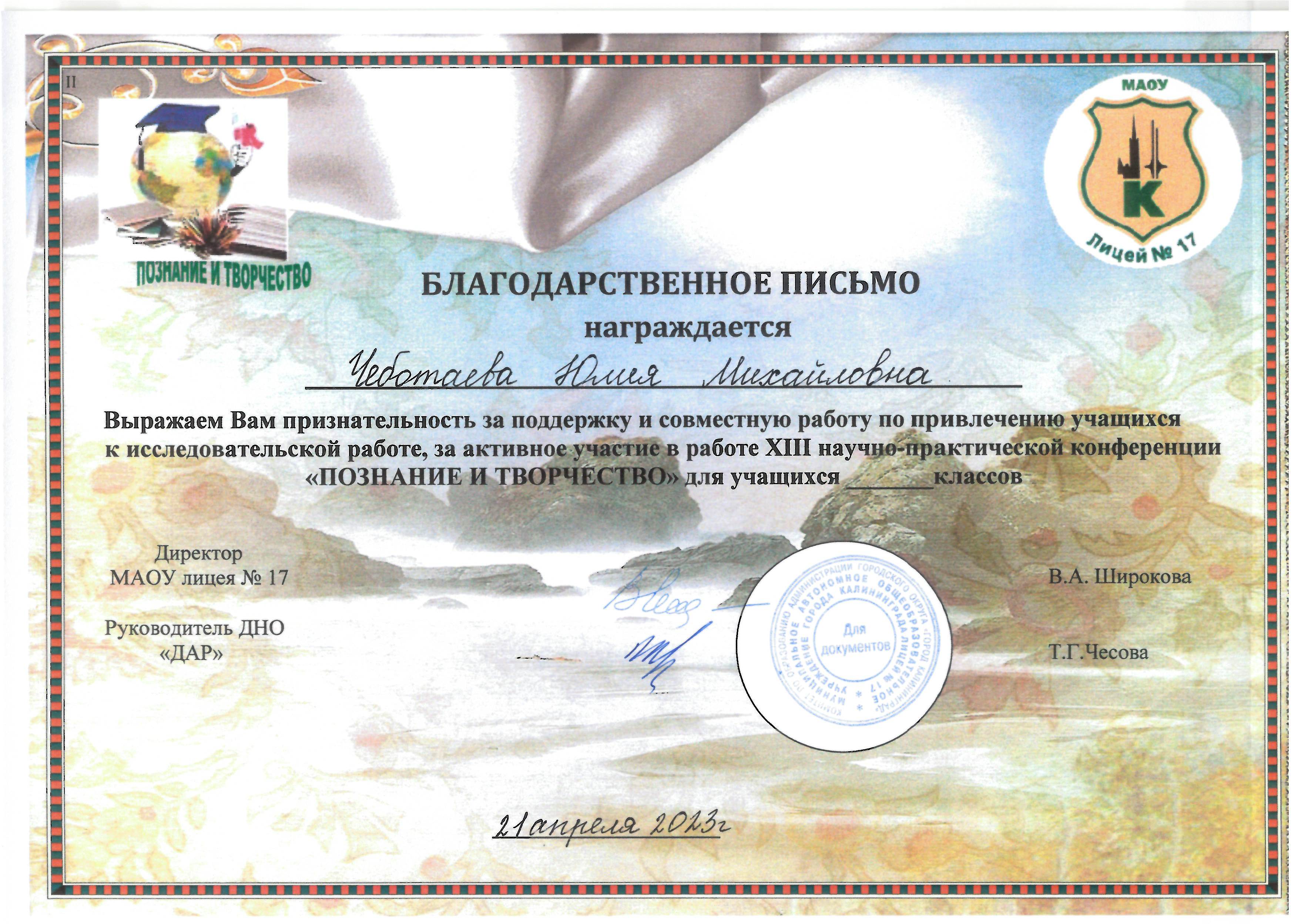 Научный руководитель: Чеботаева Юлия Михайловна.