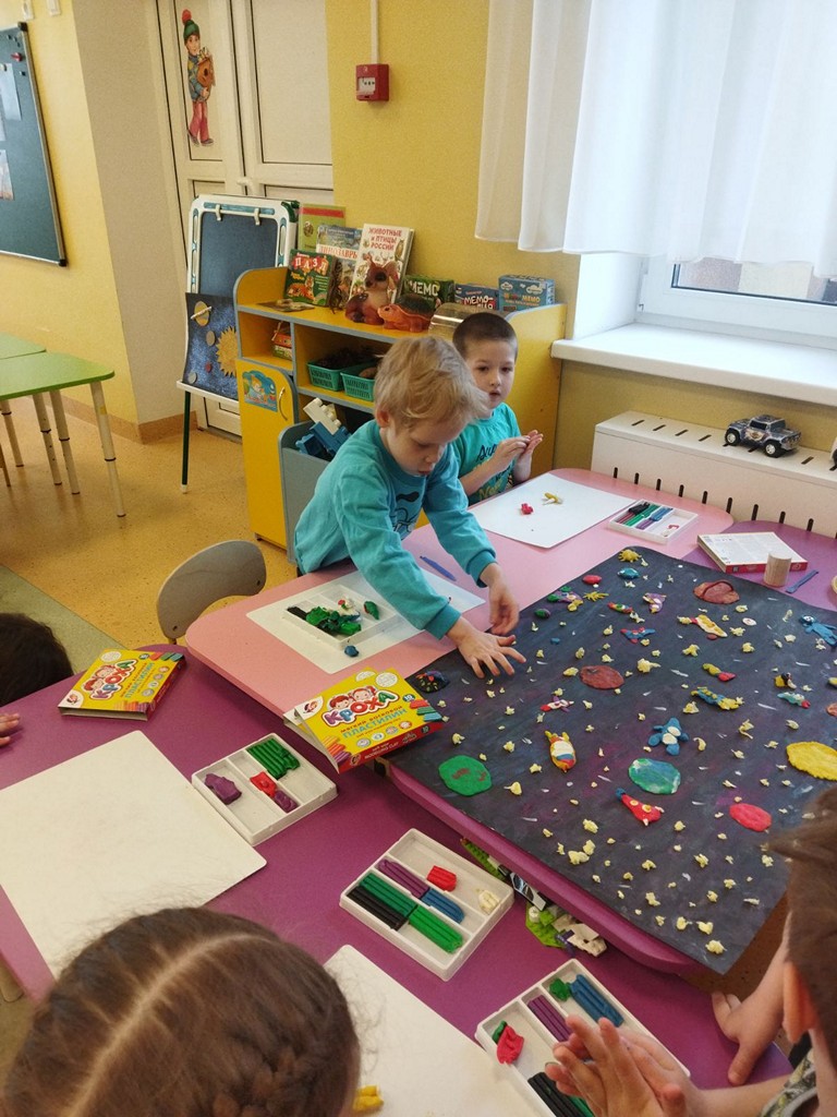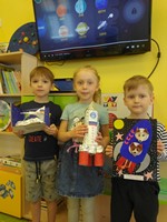 Насыщенными и интересными, познавательными и творческими выдались дни накануне одного из самых важных и любимых праздников нашей страны - Дня космонавтики. Ребята группы «Сказка» вместе со своим воспитателем Буткене Марией Сергеевной познакомились не только с известными датами и знаковыми именами летчиков-космонавтов и конструкторов, но и немало узнали о самой Вселенной, о Солнечной системе, о звёздах и планетах. С удовольствием изготовили объемную аппликацию " Выход в открытый космос" в память о нашем земляке Алексее Архиповиче Леонове, который 18 марта 1965 года впервые совершил этот подвиг. А коллективная работа " Космос" стала настоящей моделью Солнечной системы. Мы и на различные игры теперь собирается только с помощью специальной считалки, позволяющей легко запомнить порядок расположения планет от Солнца! А ещё у нас в группе поселился симпатичный инопланетян из воздушных шаров, кстати, именно на примере воздушного шарика ребятам было продемонстрировано такое явление, как реактивная тяга, с помощью которой и взлетает настоящая ракета. Не остались в стороне и родители - необычные и очень интересные рисунки и поделки украсили нашу " космическую" выставку и главный стенд детского сада.