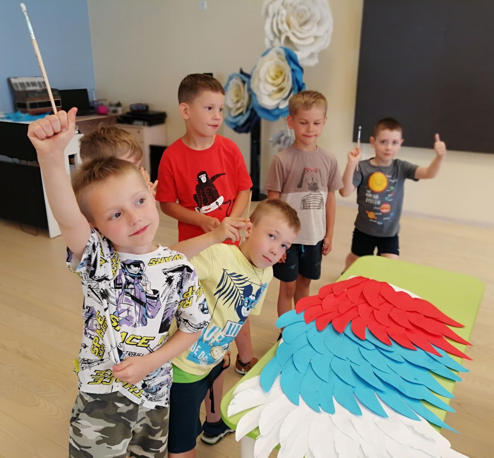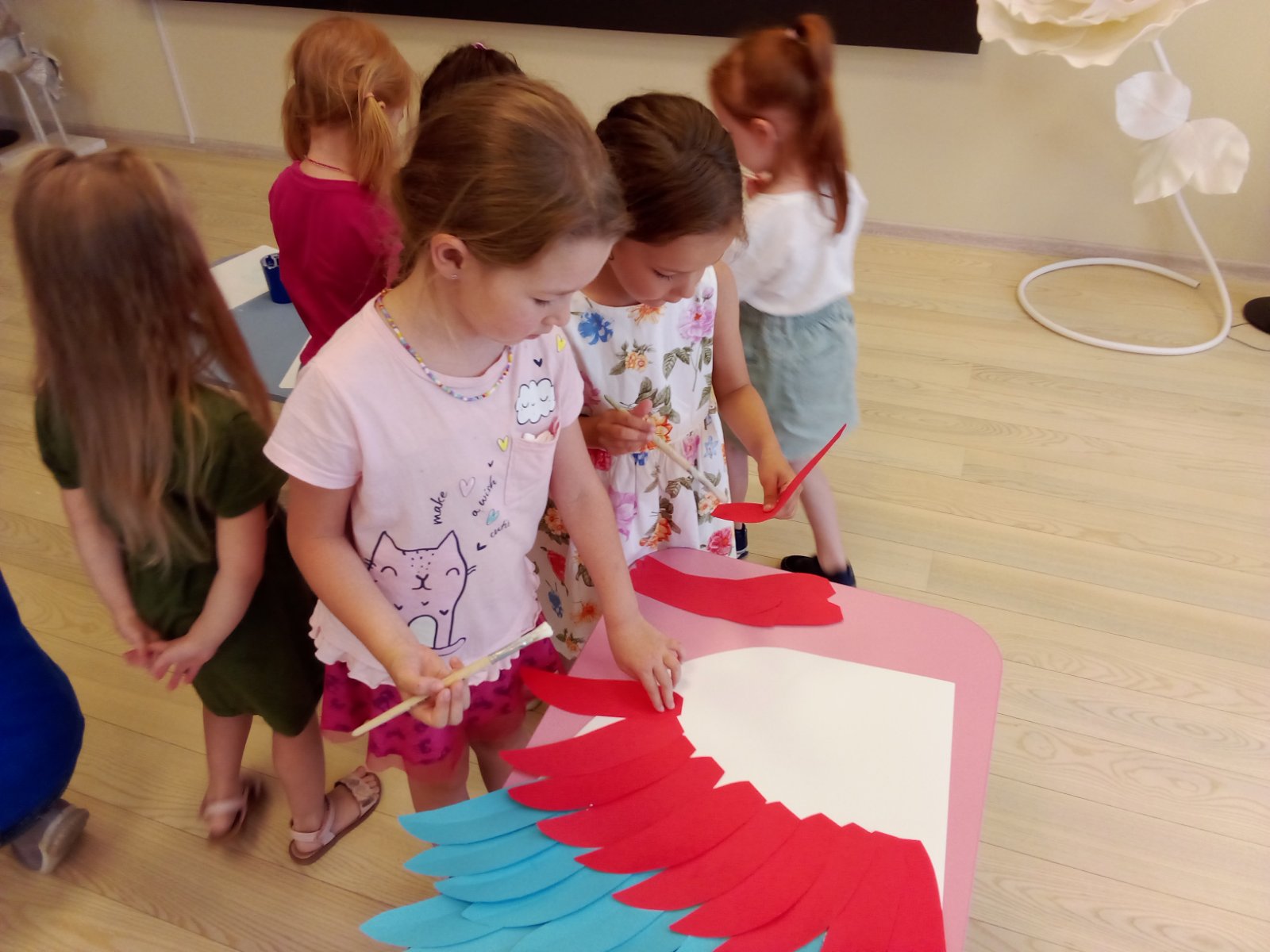 9 июня 2023 года в группе "Путешественники" в честь дня России прошло коллективное творческое дело "Крылья России". Наставниками для ребят старшей группы в этой важной деятельности стали педагог-психолог Альбина Валерьевна Бачурина и педагог группы Елена Викторовна Радочина.
