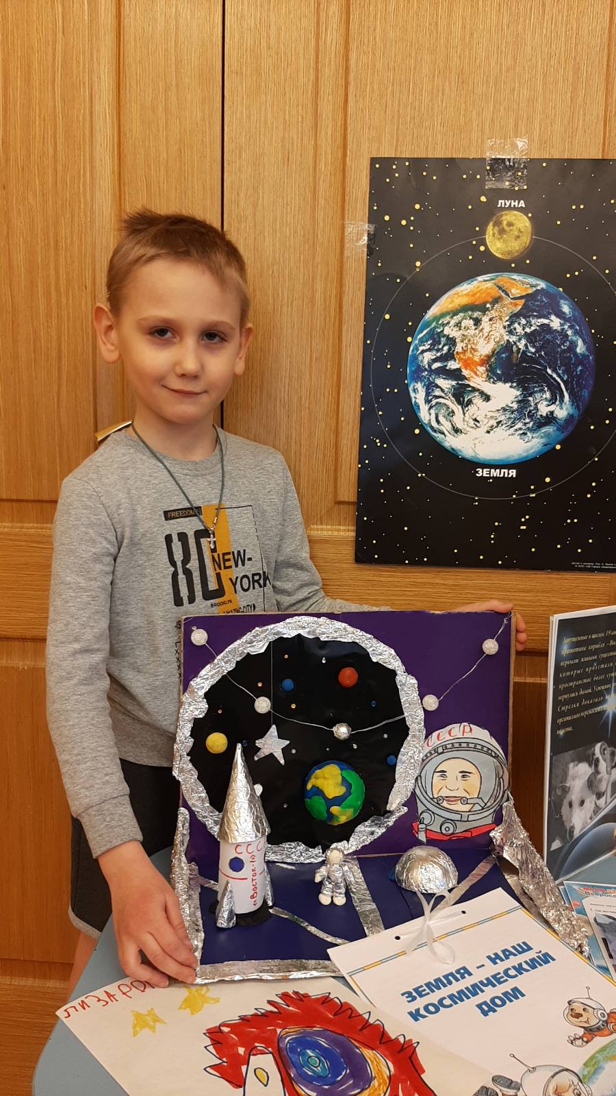 В нашей группе "Радуга" создана выставка "Путешествие в космос". Дети совместно с родителями соорудили модели космических кораблей, планет. Каждый может подойти внимательно рассмотреть и изучить строение космических кораблей. Воспитанники выучили стихотворения на космическую тему. Эх, увлекательное получилось путешествие в космос!