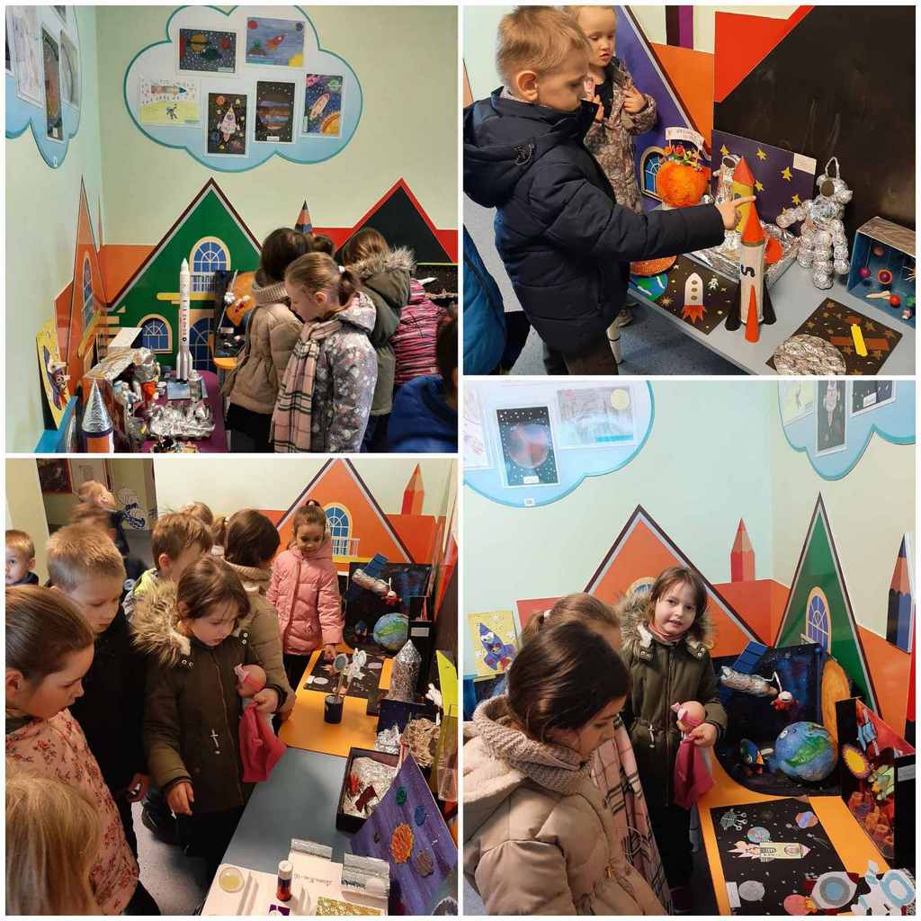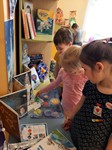 Ребята группы «Радуга» посетили выставку экспонатов "Отправляемся в космос", размещенную на втором корпусе детского сада.