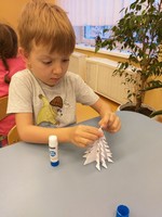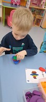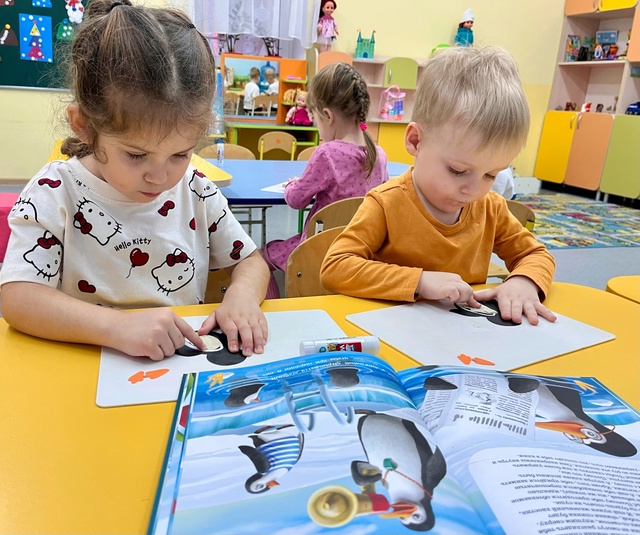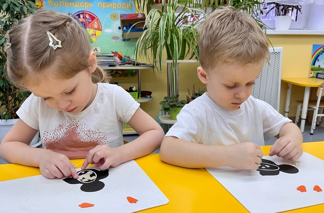 Во второй младшей группе «Фантазеры» на занятии по художественно-эстетическому развитию - Лепка, у воспитателя Сулименко А. И. дети занимались в технике пластилинография: создавали изображение пингвина на картонной основе. В ходе творческой деятельности дошкольники не только получили радость от поделки, но и самое главное, что посредством работы с пластилином у детей развиваются мелкие мышцы пальцев и рук, тренируется координация рук и глаз, развивается воображение.
