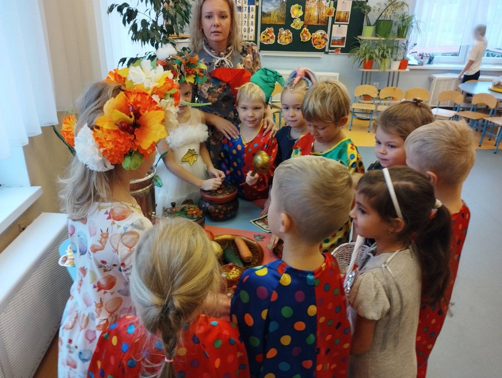 20 ноября 2023 года в группе "Радуга" прошло открытое занятие в рамках методической недели под руководством воспитателя Цейслер Н.Н. Тема - "Фольклорный праздник Осенины". Целью занятия было приобщение детей дошкольного возраста к русским народным традициям празднования «Осенин». Ребята продолжили знакомство с календарными праздниками, пели частушки, песни, разгадывали загадки, водили хоровод, играли в игры.