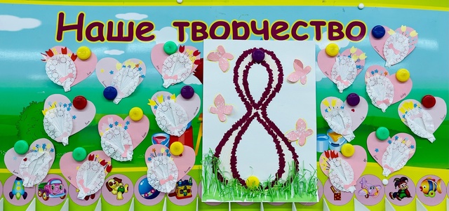 Дети, второй младшей группы «Фантазеры» к Международному женскому дню выполнили на занятии по художественно-эстетическому развитию (Аппликация) у воспитателя Сулименко А.И. - открытку к 8 марта. Девочки и мальчики, клеили из подготовленных элементов - цветов - букеты, и оформляли их в композицию. Вот такие поздравительные открытки к 8 марта получились у ребят!