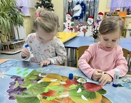 В соответствии с темой календарной недели «Царство деревьев» воспитателем Сулименко А.И. в средней группе «Фантазеры» проведено занятие по художественно-эстетическому развитию - рисование. На занятии дошкольники не только вспомнили лиственные деревья: рябина, берёза, дуб, клён, а ещё раскрасили листья деревьев гуашью, выбирая для этого осенние цвета - краски осени!
