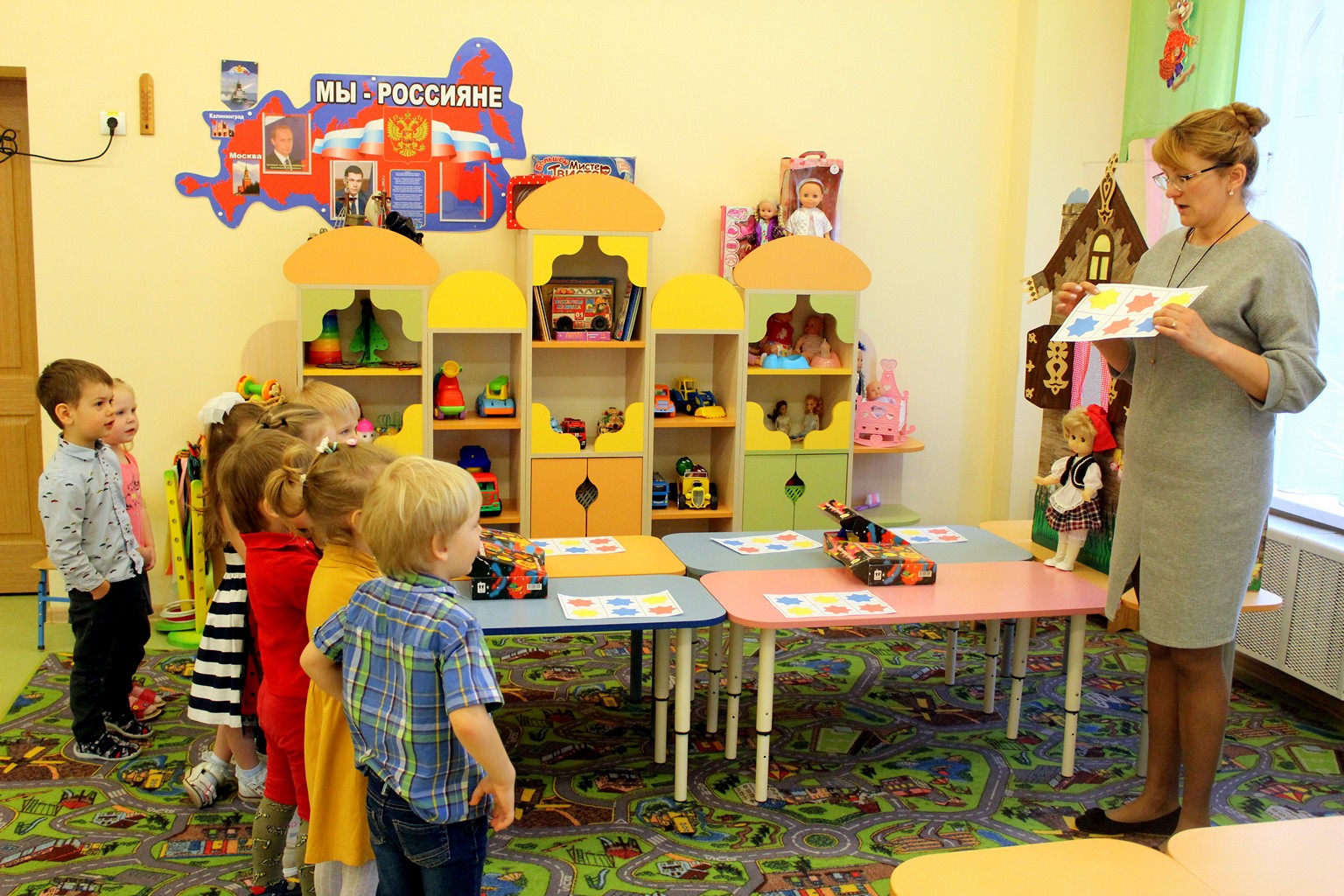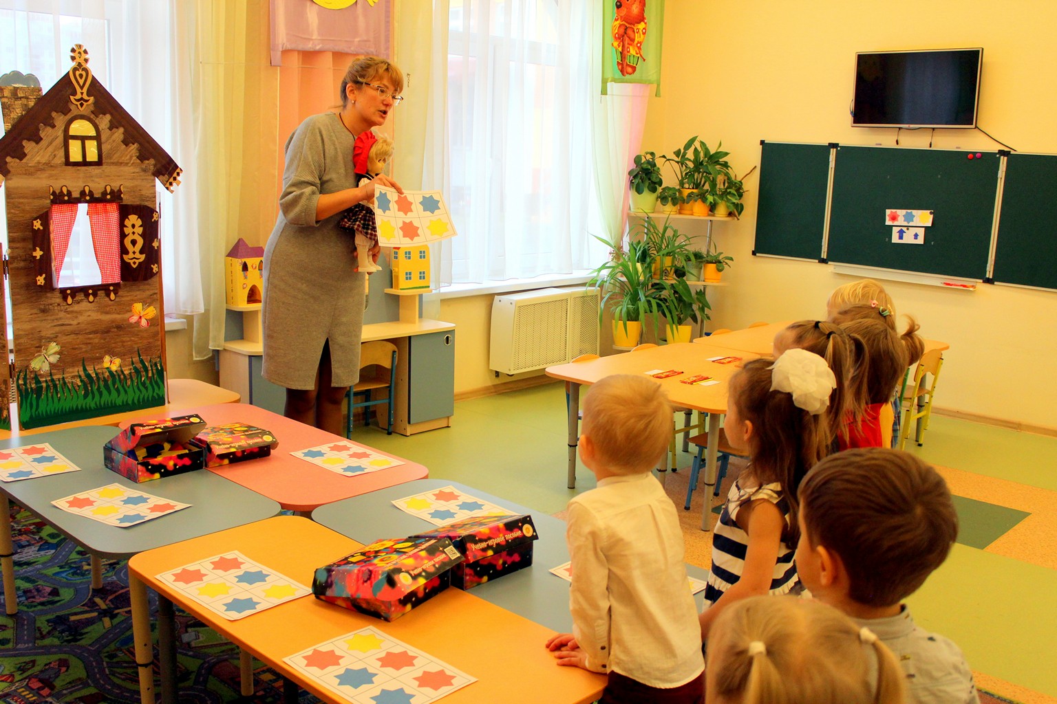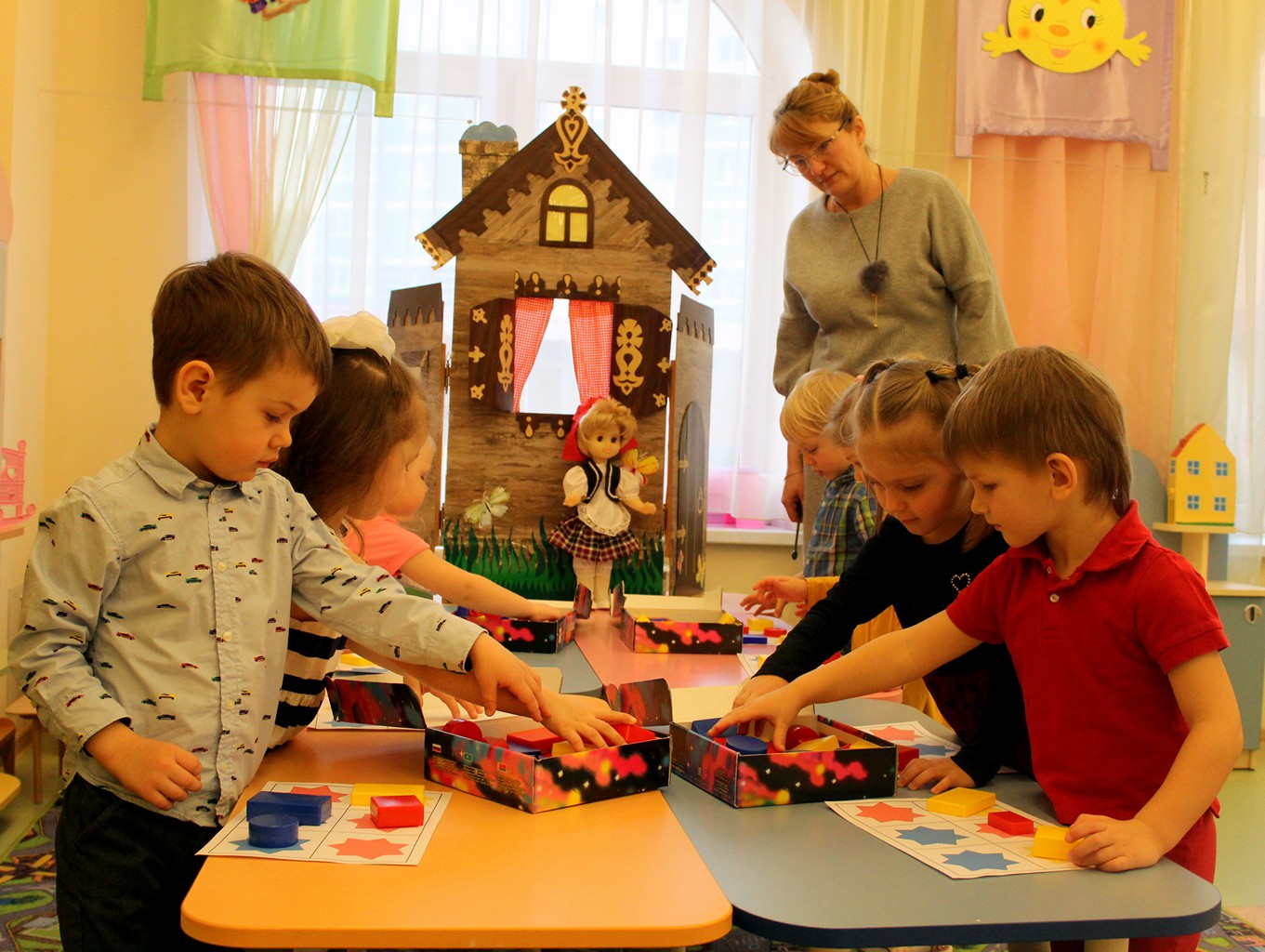 Занятие называлось «Поможем лисичке построить домик». В процессе конструирования дети повторили название геометрических форм, цветов; закрепили навыки сравнивать предметы по величине; самостоятельно учились анализировать свою деятельность и делать выводы.