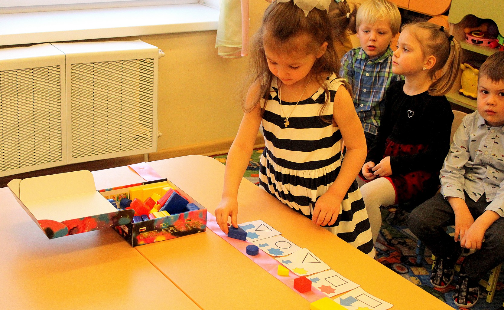В рамках методической недели «Формирование познавательных интересов дошкольников посредством проведения интеллектуальных игр и квестов», проходившей в феврале 2021 года, в группе «Колобок» педагогом Харьковой Ю. С. реализовывался проект «По страницам сказок с блоками Дьенеша».
