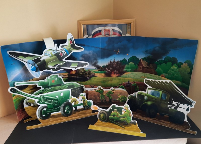 По иллюстрациям были проведены с детьми беседы о ВОВ, создана выставка "Парад военной техники", выставка совместных работ детей и родителей. Создан лепбук "Великая Отечественная Война", приобретены иллюстрации городов - героев, плакатов, атрибуты на военную тематику. Дети познакомились с песнями военных лет, а "Катюшу" и "С дедом на парад" выучили. Так же, дети познакомились по видеосюжетам с парадом Победы на Красной площади.