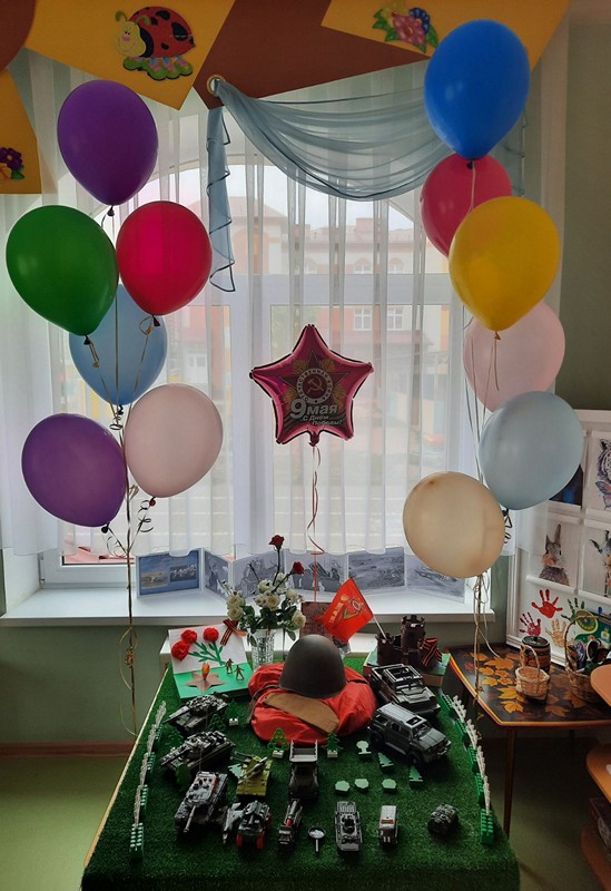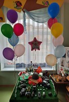 Совместно с родителями были украшены раздевалка группы, стенд для детских работ. По всей группе был "Праздничный салют" в виде надувных гелиевых шариков!