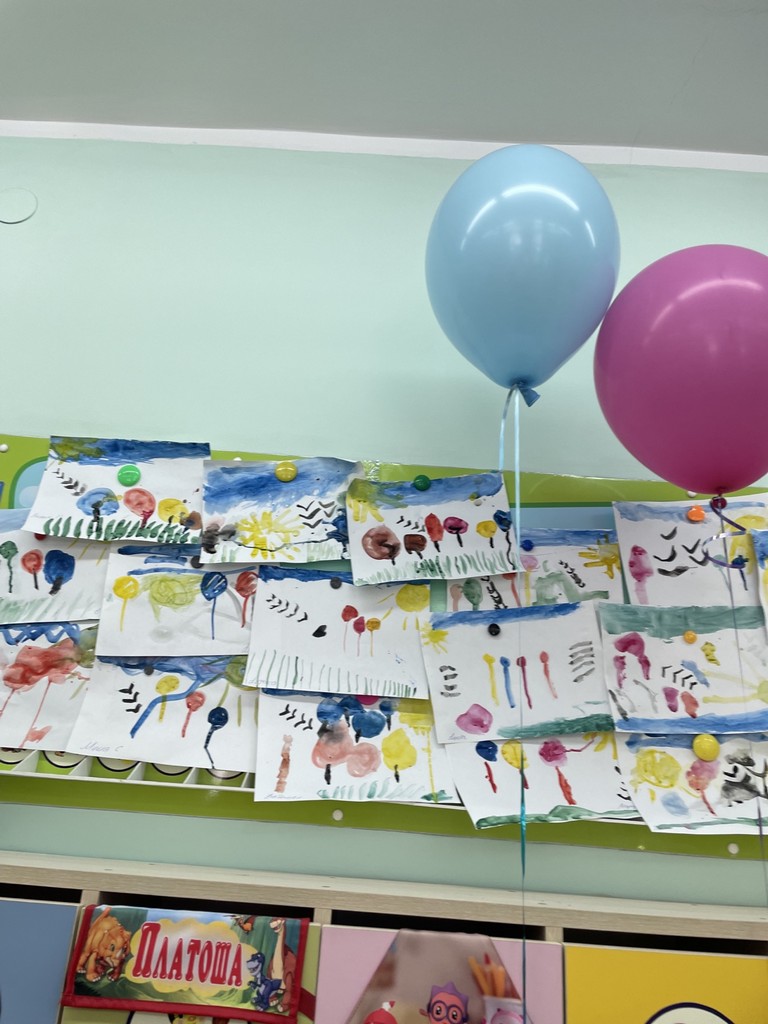 Вместе с воспитателем Тевосовой Джульеттой Давидовной: рисовали воздушные шары, а на прогулке мы загадывали желания и дружно выпустили шары в небо!