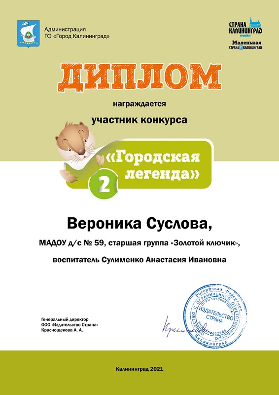Итоги конкурса «Моё место» детского журнала «Маленькая страна - Калининград»