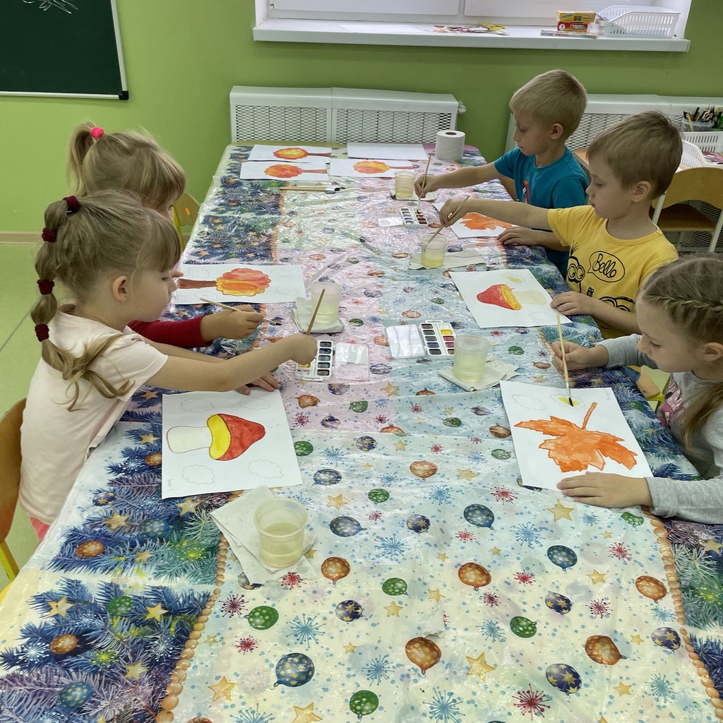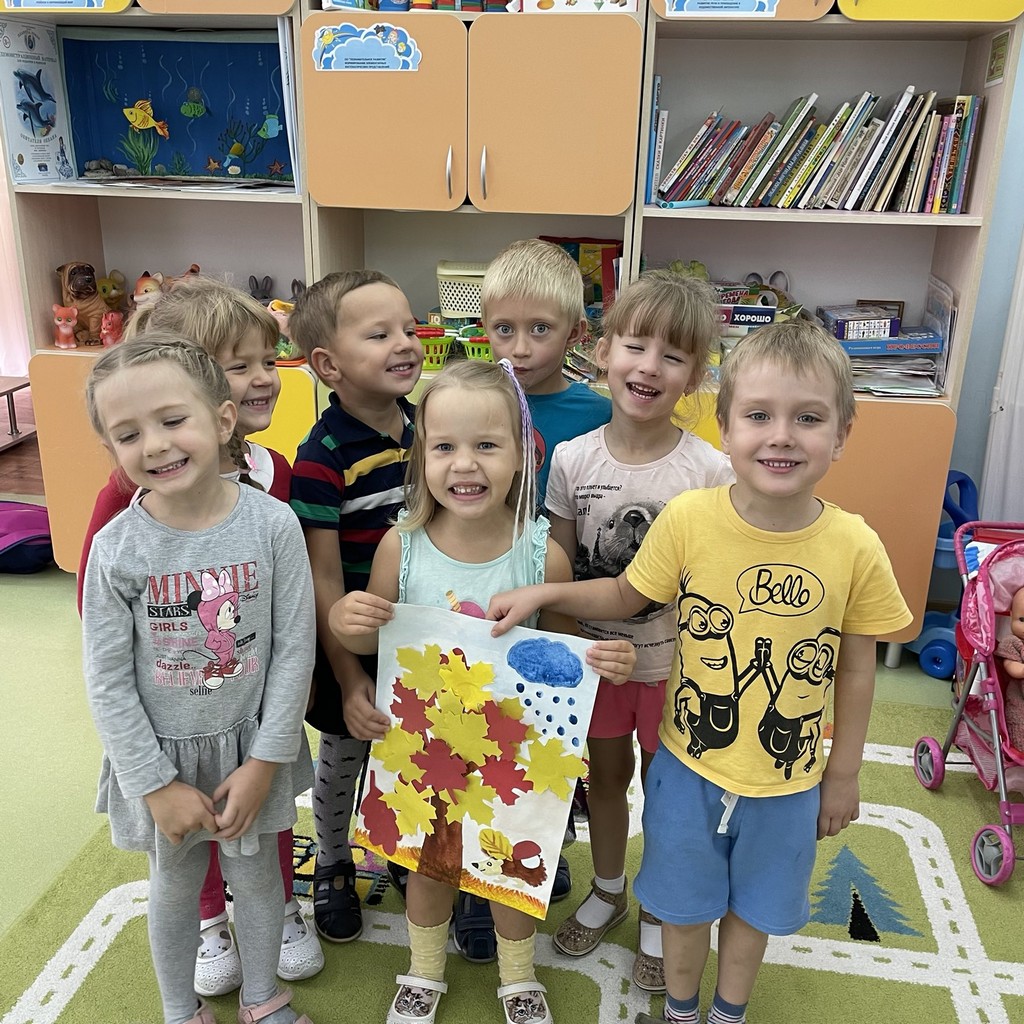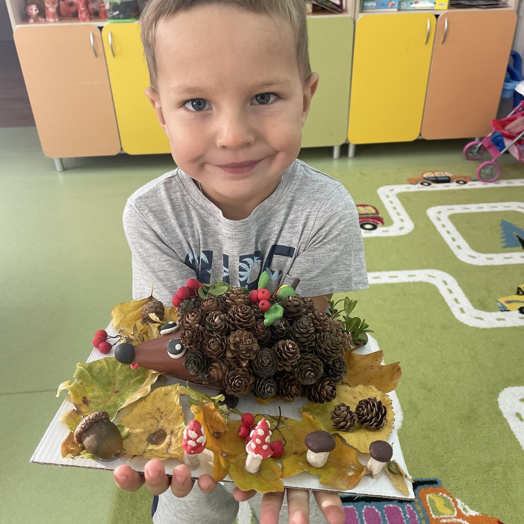 В группе «Почемучки» дети рады Осени. Во время прогулок дети любуются красотой осени, наблюдая за изменениями природы. Совместно с детьми была сделана коллективная работа «Ёж в осеннем лесу», дети с радостью принимали участие.
