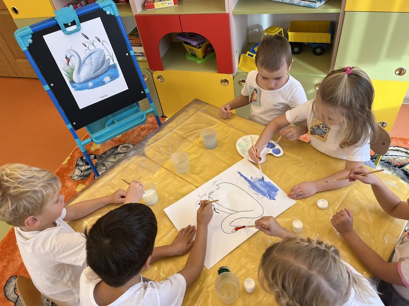 На открытом занятии «Птицы нашего края» дети обобщили знания о птицах, которые обитают в Калининградской области. Отгадывали загадки о птицах, играли в дидактические игры: «Узнай птицу по силуэту», «Лесная кормушка», а также раскрашивали птицу - лебедя из сказки «Гадкий утёнок« Г.Х. Андерсена.