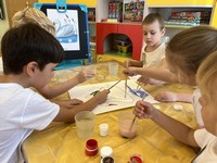 В рамках методической недели «Поддержка детской инициативы в ходе познавательно-исследовательской и опытно-экспериментальной деятельности» воспитателем Сулименко Анастасией Ивановной в средней группе «Золотой ключик» 16 февраля 2023 года было проведено открытое занятие по изобразительной деятельности «Мы рисуем самолёт, самолёт и вертолёт». В предверии праздника 23 февраля «День защитника Отечества» с дошкольниками были проведены предварительные беседы на тему: виды вооруженных войск армии России, выделена профессия военного лётчика, а также рассказано о военных самолетах и вертолётах. Поддерживая детскую инициативу в выборе летательного аппарата - самолёта или вертолёта, дети рисовали в нетрадиционной технике с использованием гуаши кистью-тампоном из поролона. Цвет неба в творческой деятельности ребёнок выбирал самостоятельно: гуашь синего, голубого, фиолетового, бирюзового цветов были предложены детям. При поддержке детской инициативы дошкольники не только освоили нетрадиционную технику рисования, но и проявили свою фантазию на занятии по изобразительной деятельности «Мы рисуем самолёт, самолёт и вертолёт»!