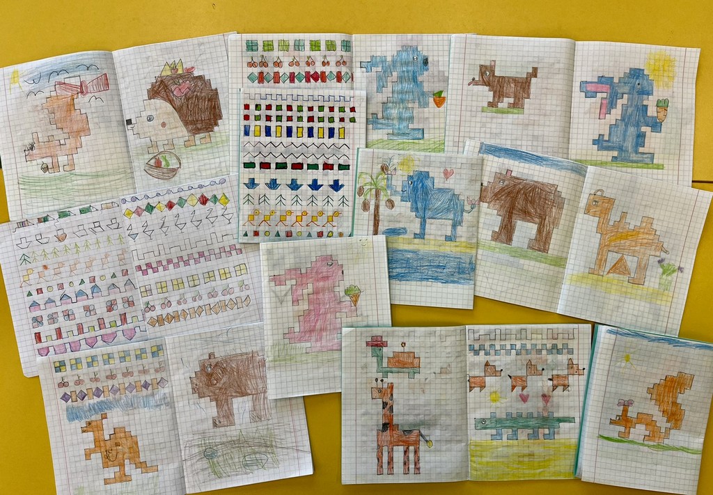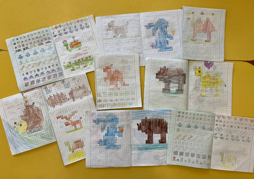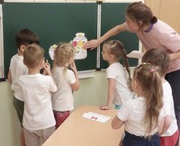 В подготовительной к школе группе «Золотой ключик» на Занятии по Формированию Элементарных Математических Представлений у воспитателя Сулименко А. И. дошкольники выполняют математический диктант по клеточкам. Математический диктант - это очень интересное и полезное занятие для детей. С помощью рисования по клеточкам дети учатся самостоятельности и внимательности при выполнении диктанта: самостоятельно упражняются в счёте, на слух воспринимают и определяют по клеткам, понятия: вверх-вниз, вправо-влево, тем самым ориентируются в пространстве листа. При выполнении задания ребёнок становится усидчивым и конечно же готовит свою руку к письму. В тетрадях у ребят получились забавные животные, а ко Дню космонавтики - ракеты!