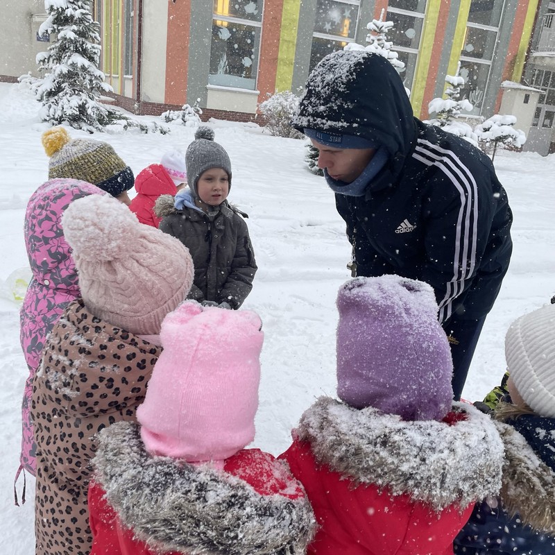 Дети группы «Почемучки» очень рады приходу Зимы . Наш красивый детский при входе встречают светящие фигуры оленей . Будто сказка в гости нас зовет, в зимний лес с собой ведет . На прогулке детям очень весело! В такую погоду особенно полезно заниматься физической культурой. Вместе с инструктором по физической культуре Е.А. Мельниковым весело и задорно провели занятие!