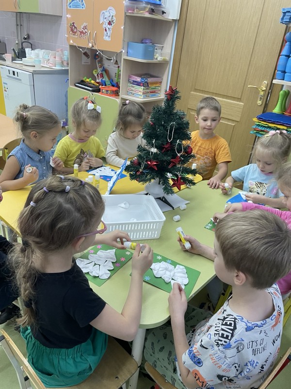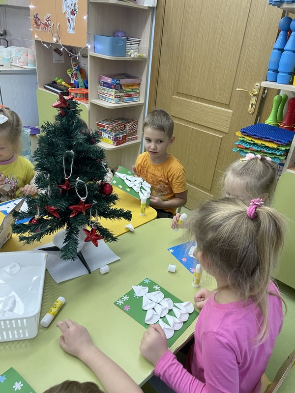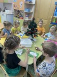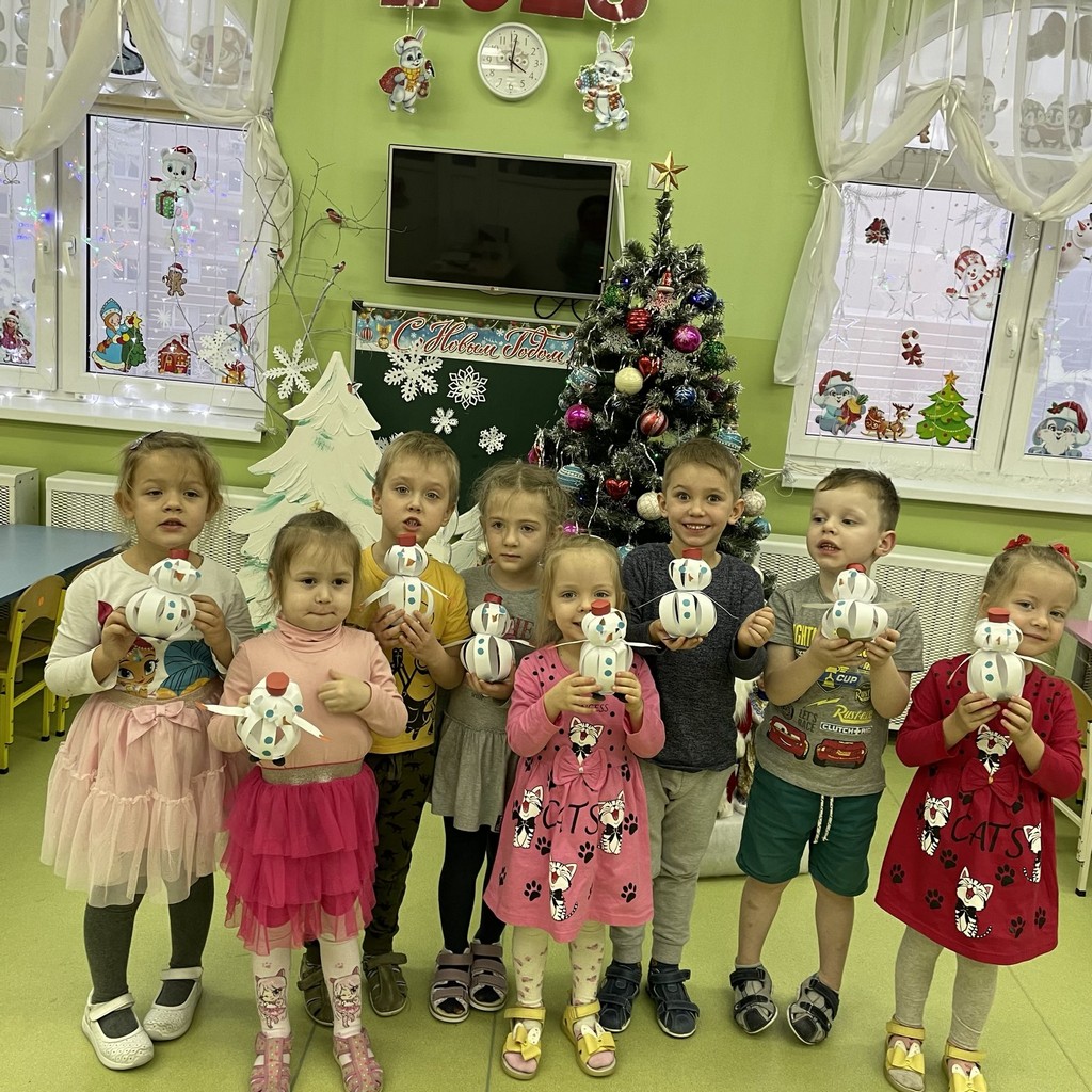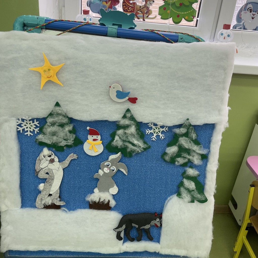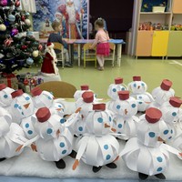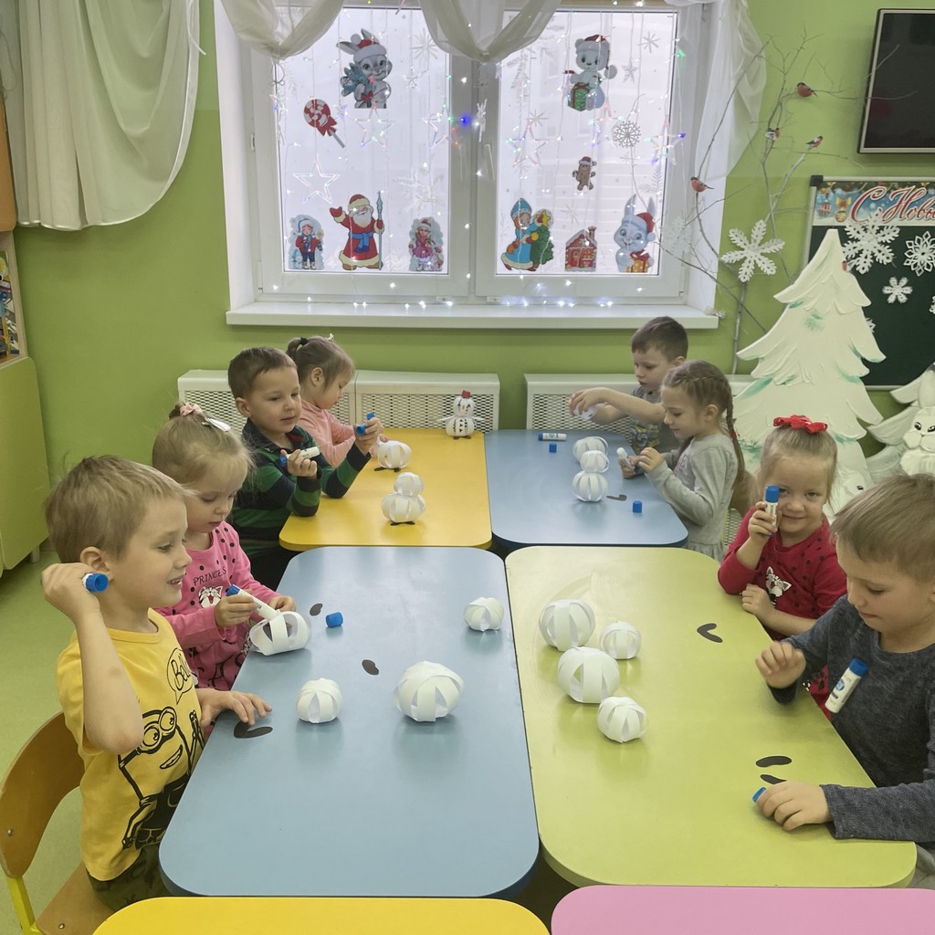 После прочтения сказки М.Н. Мамина-Сибиряка "Храбрый заяц , длинные уши, косые глаза, короткий хвост », ребята группы «Почемучки» выполнили коллективную работу «Зайцы пляшут возле елки». А также проиграли сценку из героев сказки. Веселые снеговички, выполненные из бумаги, украсили новогоднюю выставку нашей группы.