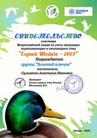 В рамках Всероссийской акции «Серая шейка 2023» группа «Золотой ключик» 14-15 января приняла участие в среднезимнем учёте водоплавающих птиц. Родители и дети наблюдали за водоплавающими птицами не только в городе Калининграде: в парке Макса Ашмана на озере Лесном, на озере Поплавок (Хлебное озеро) расположенном рядом с проспектом Мира, на реках Преголи и Голубой. Но и в Калининградской области: посёлке Колосовка на реке Граевка. В карточку учёта участника акции были занесены водоплавающие птицы: дикие утки - кряквы, чайки, лебеди и лысухи. Дети вместе с родителями увидели зимующих водоплавающих птиц своего края!