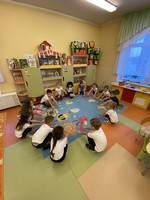 В подготовительной к школе группе «Золотой ключик» в 2023-2024 учебном году воспитателем Сулименко А. И. реализуется бесплатная дополнительная общеобразовательная общеразвивающая программа социально-гуманитарной направленности «Клуб читателей» В ноябре месяце по программе кружка детям прочтены рассказы о природе Михаила Пришвина «Журка», «Ребята и утята», «Курица на столбах» и другие. Воспитатель с дошкольниками не только проводит беседу по содержанию произведений: по рассказу «Ребята и утята» проведено Занятие по ХЭР, на котором дети выполнили рисование методом «тычка».