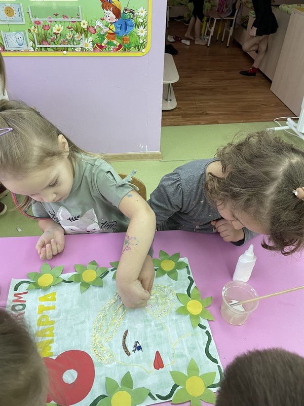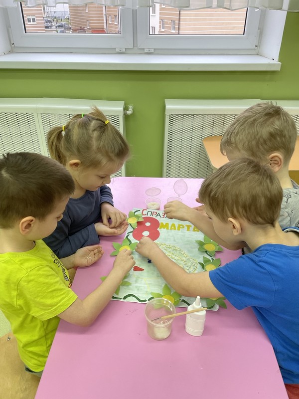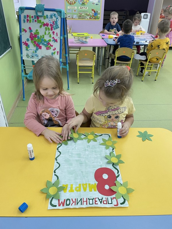 Девочки и мальчики группы «Золотой ключик» к Международному женскому дню выполнили на занятии по художественно-эстетическому развитию воспитателя Сулименко А.И. - открытку к 8 марта. Дети, вырезали элементы для открытки в виде цветка из цветной бумаги, клеили и самостоятельно писали самое дорогое слово «мама»! Вот такие яркие поздравительные открытки к 8 марта получились у ребят!