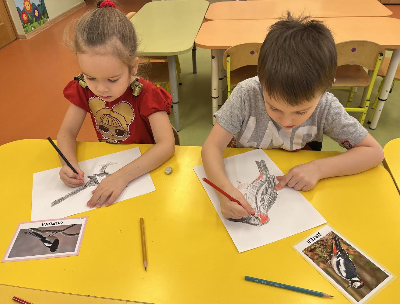 Дети рисовали городских зимующих птиц: голубя, воробья, сороку, а также снегирей, синиц и дятла, зимующих в наших краях. Участвуя в природоохранной компании дошкольники не только познакомились с видовым разнообразием зимующих птиц Калининградской области, но и развили творческий потенциал.