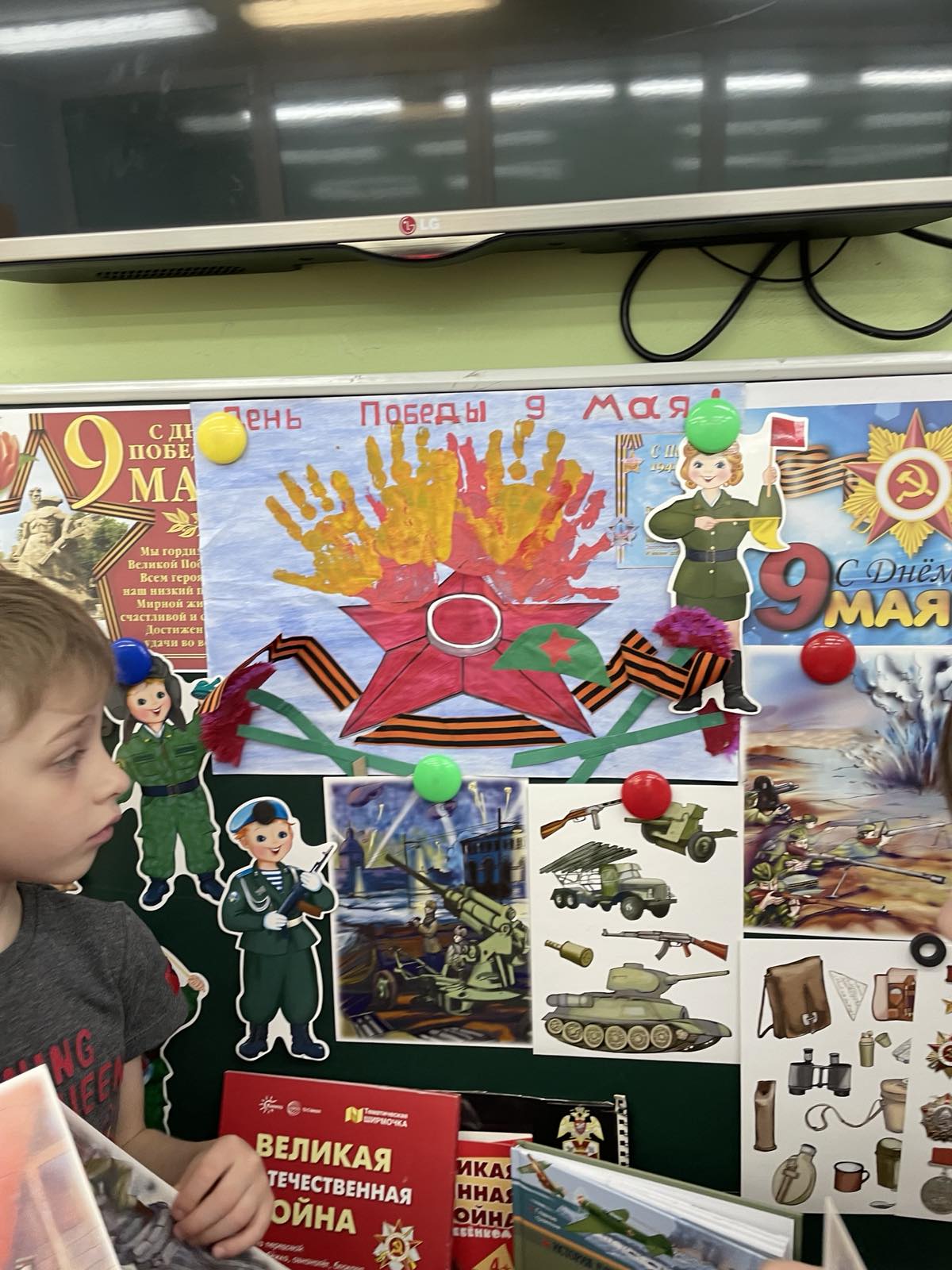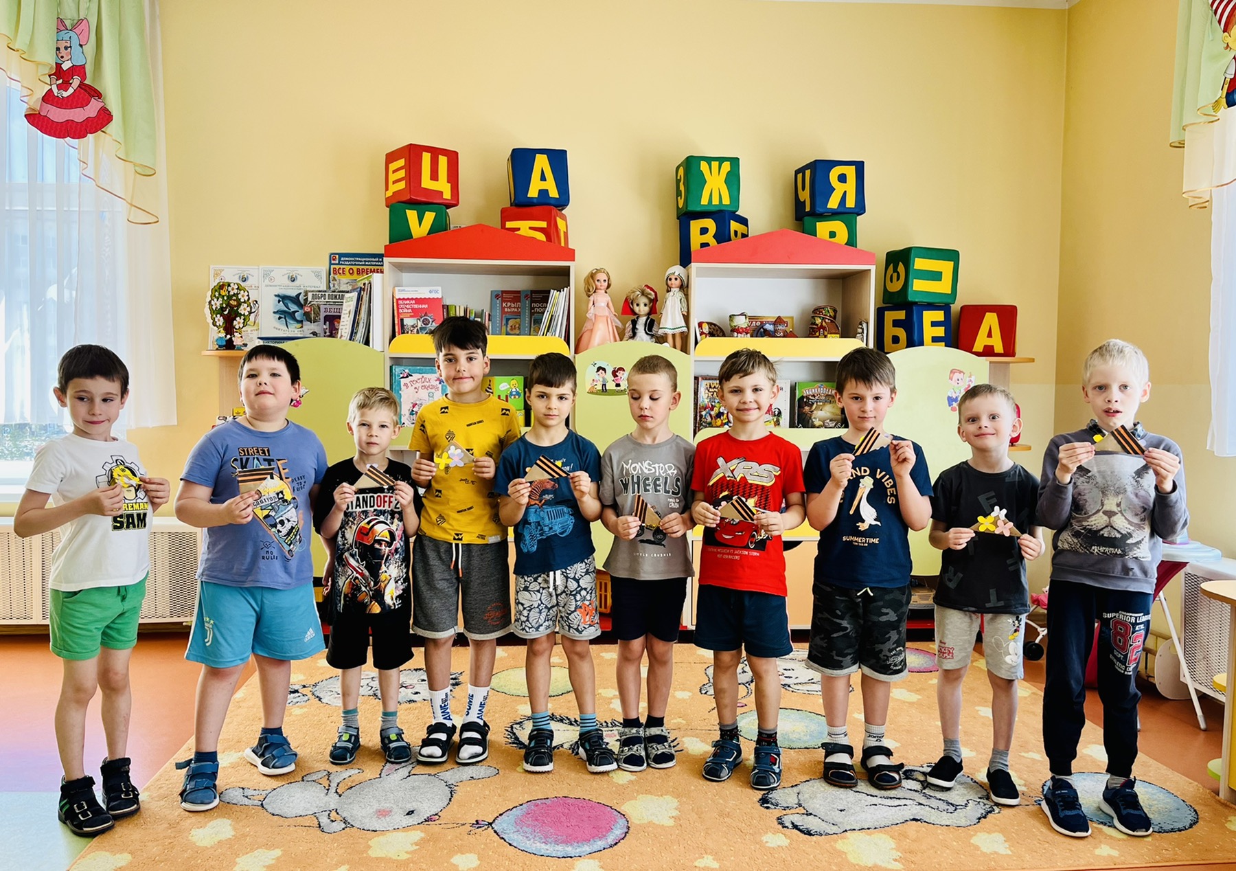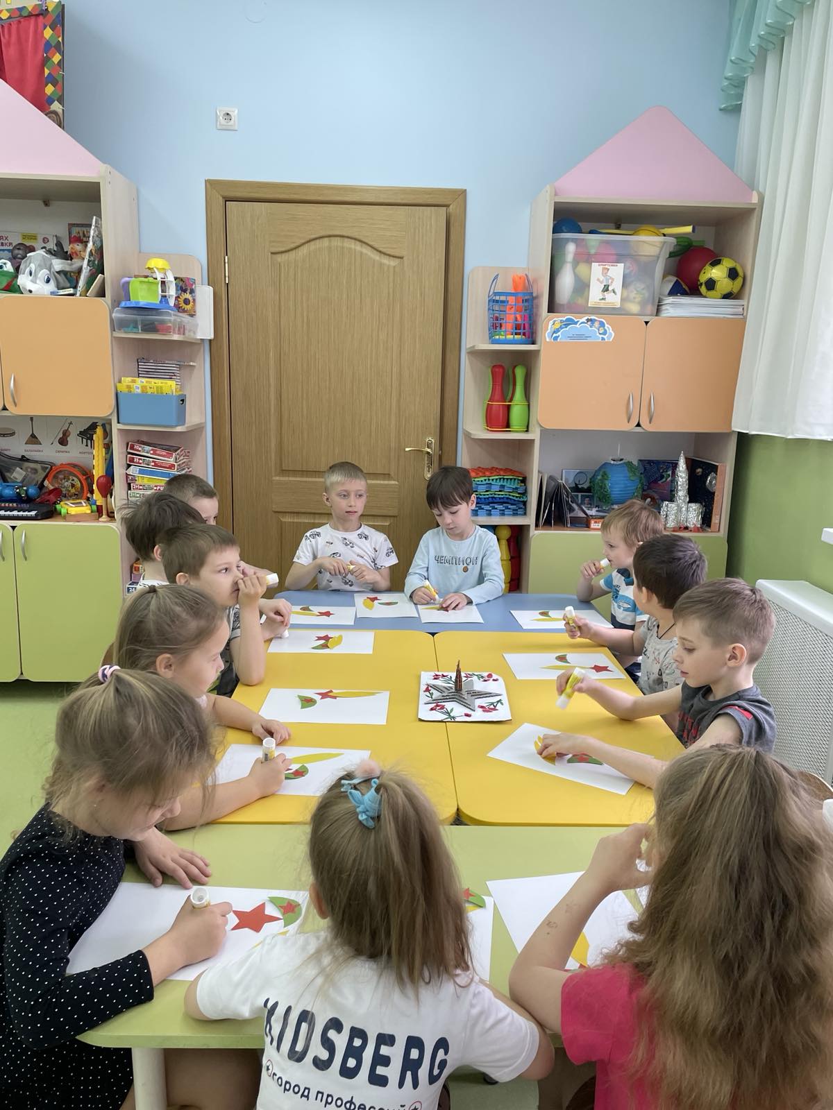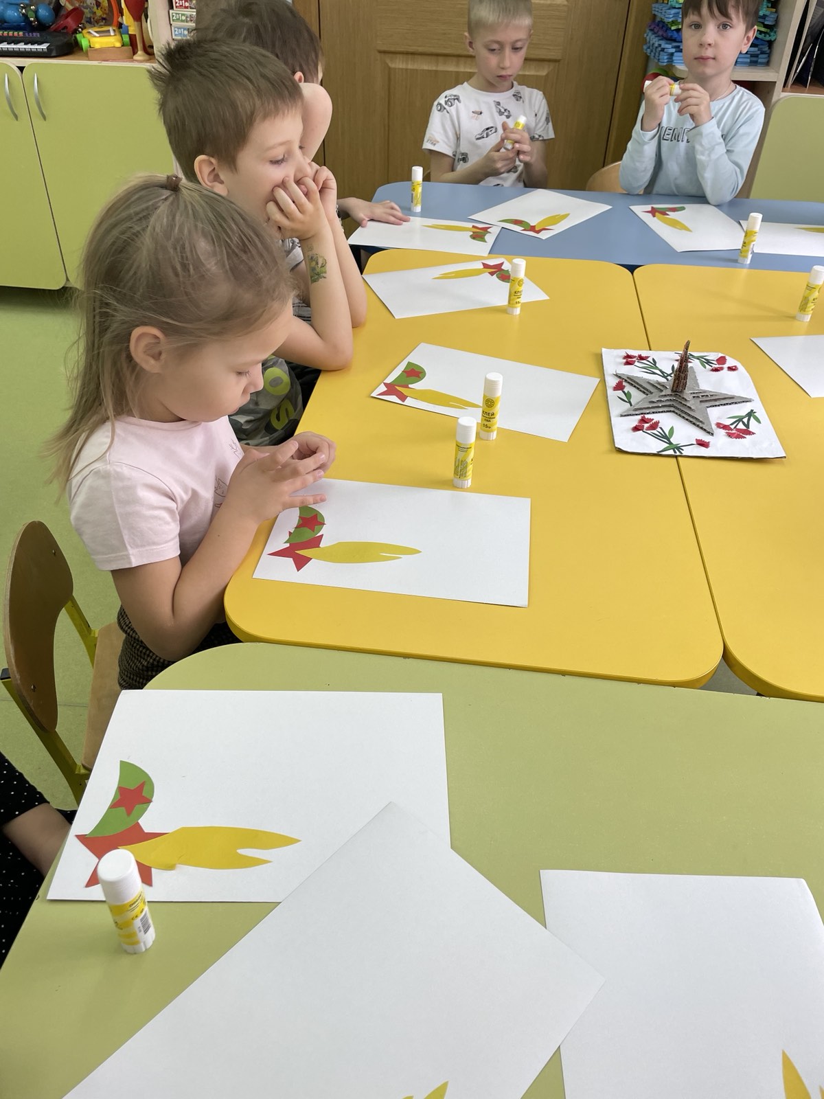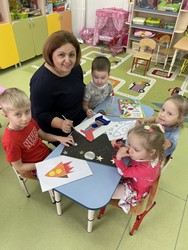 В группе «Золотой ключик» к Празднику Великой Победы - 9 мая, ребята на занятии по художественно-эстетическому развитию под руководством воспитателя Сулименко А. И. выполнили поделку «Звезда Победы».