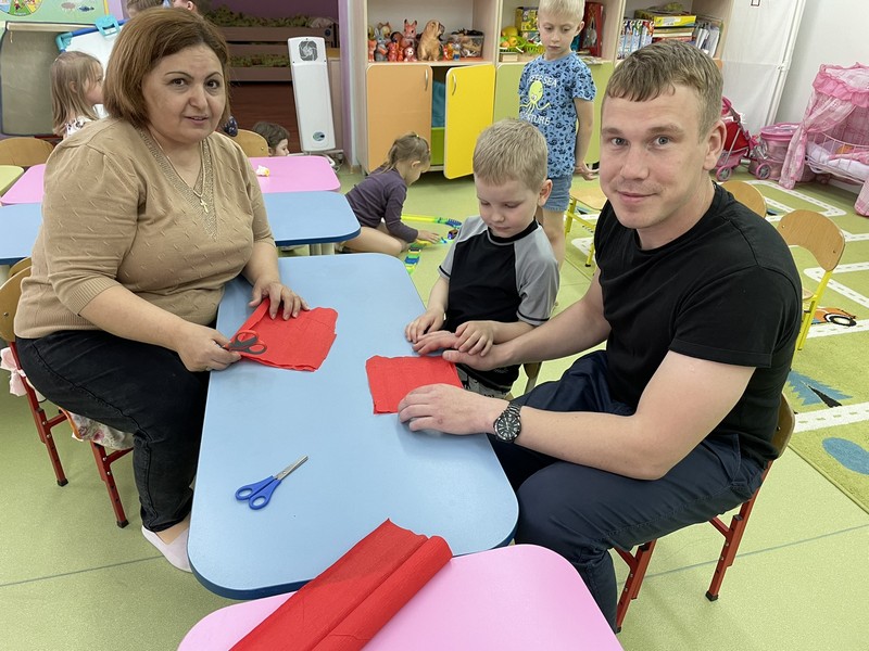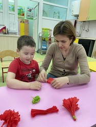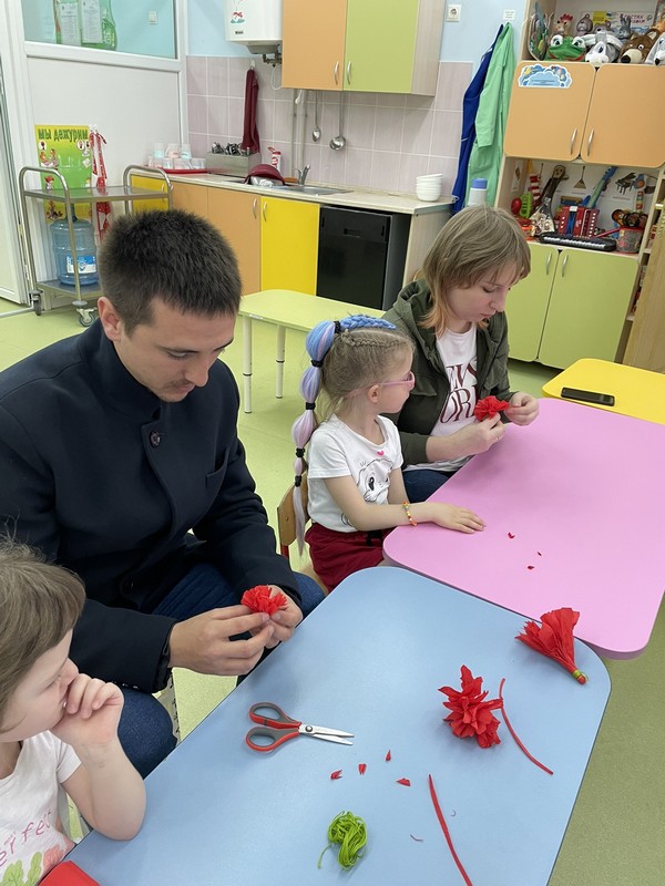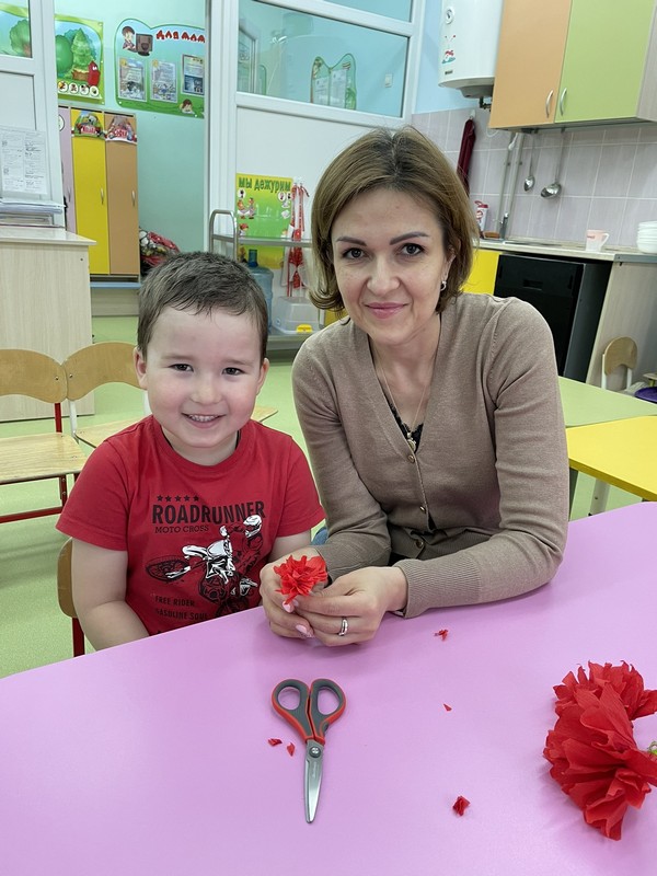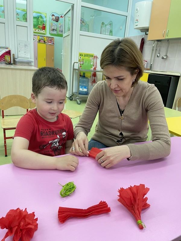 В преддверии Великого праздника 9 мая, в группе «Почемучки» под руководством воспитателя Тевосовой Д.Д. прошел мастер — класс с родителями. Родители и дети совместно изготовили объемные гвоздики. Все получили только положительные эмоции от совместной деятельности ребенок-родитель!