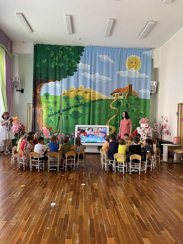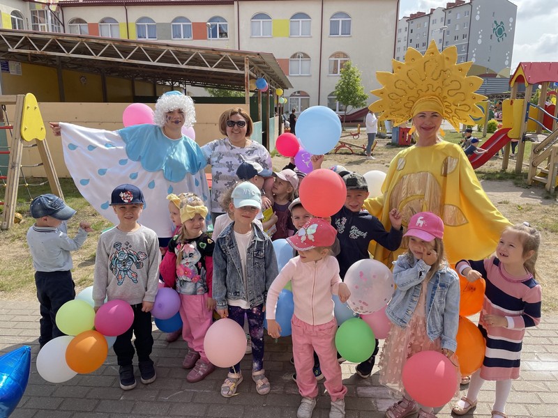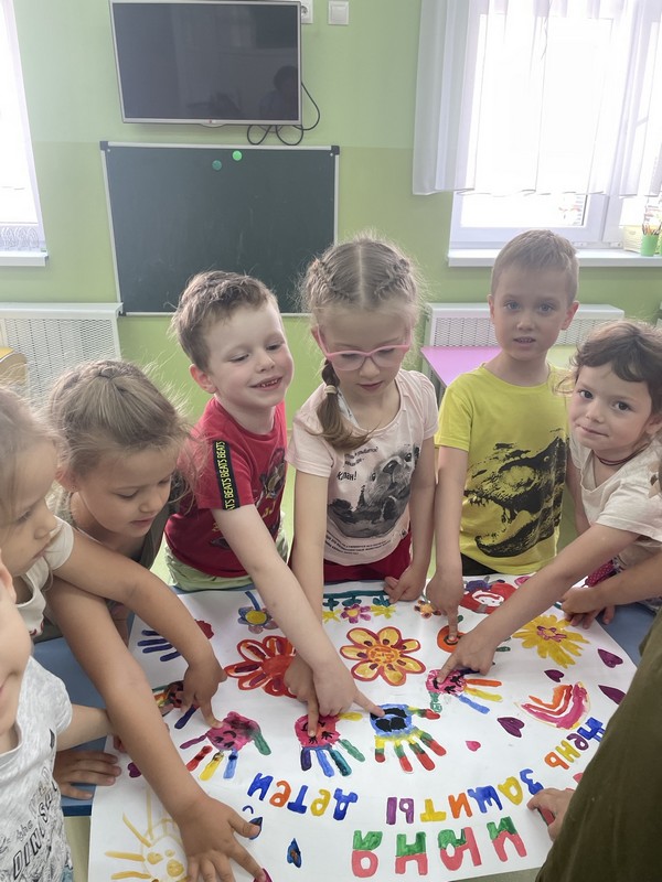 В этот день ребят поздравили и взрослые и дети и даже почтальон Печкин - все дружно пели, танцевали, рисовали и играли.