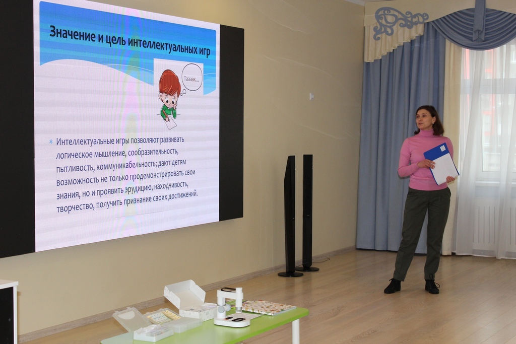 В ходе доклада были раскрыты следующие основные понятия: значение, цель и виды интеллектуальных игр, а также требования к постановке задачи в интеллектуальной игре. Информация из доклада познакомила воспитателей с формой представления интеллектуальных игр в детском саду: кроссворды, загадки, математические упражнения, игры-соревнования и словесные задания могут быть использованы для организации занятий с дошкольниками.