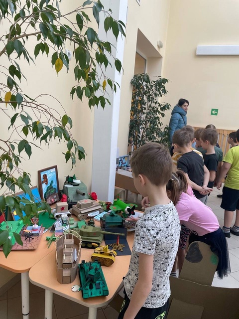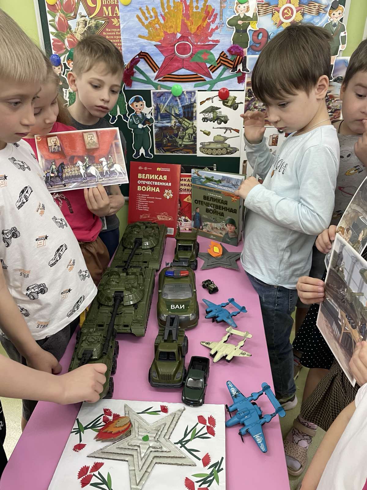 К празднику «9 мая – Дню Великой Победы» родители и дети подготовительной группы «Золотой ключик» подготовили к выставке поделки совместного творчества, изготовленные своими руками, плакаты и игрушки на тему «Военная техника».