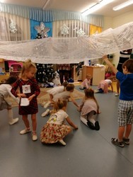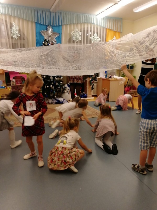 Увлекательное и веселое новогоднее приключение квест-игру устроили родители нашей группы: Татьяна Александровна Мукашкина, Ольга Юрьевна Мокиенко, Александра Михайловна Ландо, Ольга Васильевна Куновская, даже бабушки подключились, чего стоило вырезать 50 снежинок и елочек !!!. Родители и дети получили фейерверк положительных эмоций, радость совместных переживаний и благодарность героинь сказки.