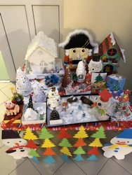 По традиции нашего садика зимний сад становиться выставочным залом рисунков и поделок на зимнюю тематику. Творчество и талант проявили многие семьи, полюбуйтесь, какая красота создана умелыми руками детей и взрослых наше группы «Непоседы»!