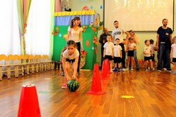 Основными целями данного мероприятия стали: пропаганды физической культуры и спорта, как наиболее действенного фактора по укреплению здоровья и развитие сотрудничества семьи и дошкольного учреждения. Воспитателем Куповой О.Г. и инструктором по физическому воспитанию Бывалец А.С. был составлен увлекательный сценарий , подобраны атрибуты, инвентарь, музыкальное сопровождение и видео-материал .Команды «Садовники» и «Огородники» дружно помогали Мишке (Бывалец А.С.) из сказки «Маша и Медведь» собрать богатый урожай. Ребятам с радостью помогали их родители и ведущий агроном Купова О.Г. Приключения начались со встречи с капельками-пружинками, с которыми дети сделали веселую разминку. А потом собрали волшебные арбузы, овощи и фрукты с чуда-дерева, отгадывали веселые загадки. В результате весь урожай был собран и рассортирован знатоками овощей, фруктов и ягод по корзинам. А веселое огородное пугало, которое нарисовали родители и дети, сохранит урожай. Каждый участник проявил свою ловкость, скорость, меткость, сноровку и смекалку, собирая необычный урожай.