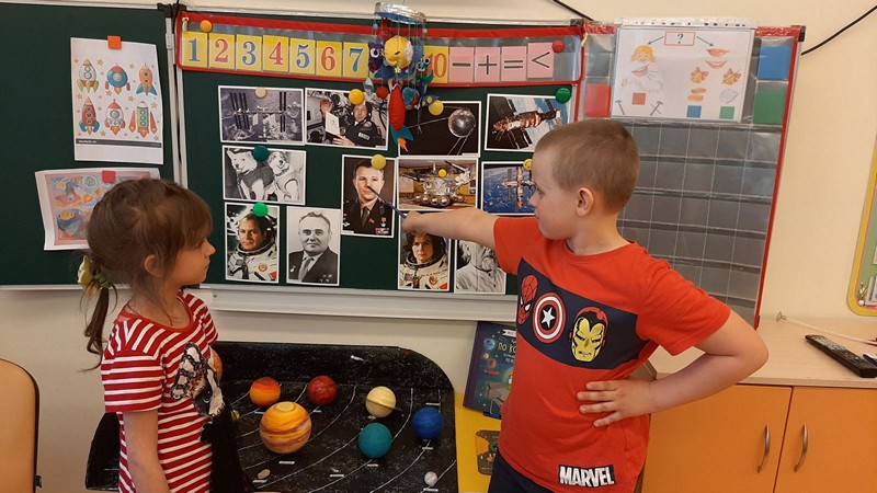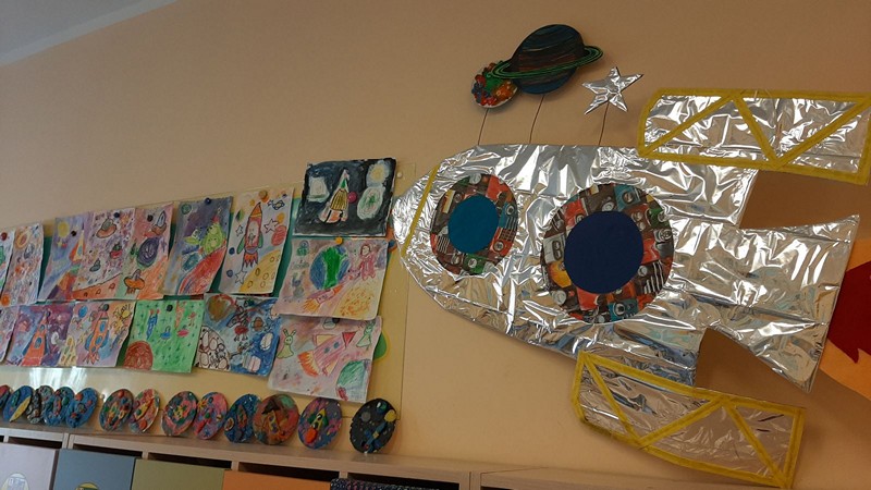 В рамках празднования 60-летия первого полета человека в космос, проходившего в начале апреля, дети, родители и педагог Купова Ольга Германовна учувствовали в выставке работ.