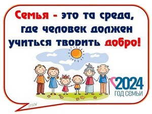 Указом Президента Российской Федерации от 22.11.2023 N 875 2024 год объявлен Годом семьи. Семья является источником любви, понимания и поддержки, учит детей быть добрыми, честными и справедливыми. В Год семьи особое внимание будет уделено сохранению традиционных семейных ценностей. К ним относятся любовь, верность, уважение, взаимопонимание и поддержка. Эти ценности являются основой крепкой и счастливой семьи. Объявление 2024 года Годом семьи - это важное событие для нашей страны. Это еще один шаг на пути к укреплению семейных ценностей. Крепкая семья - это залог стабильности и процветания общества.